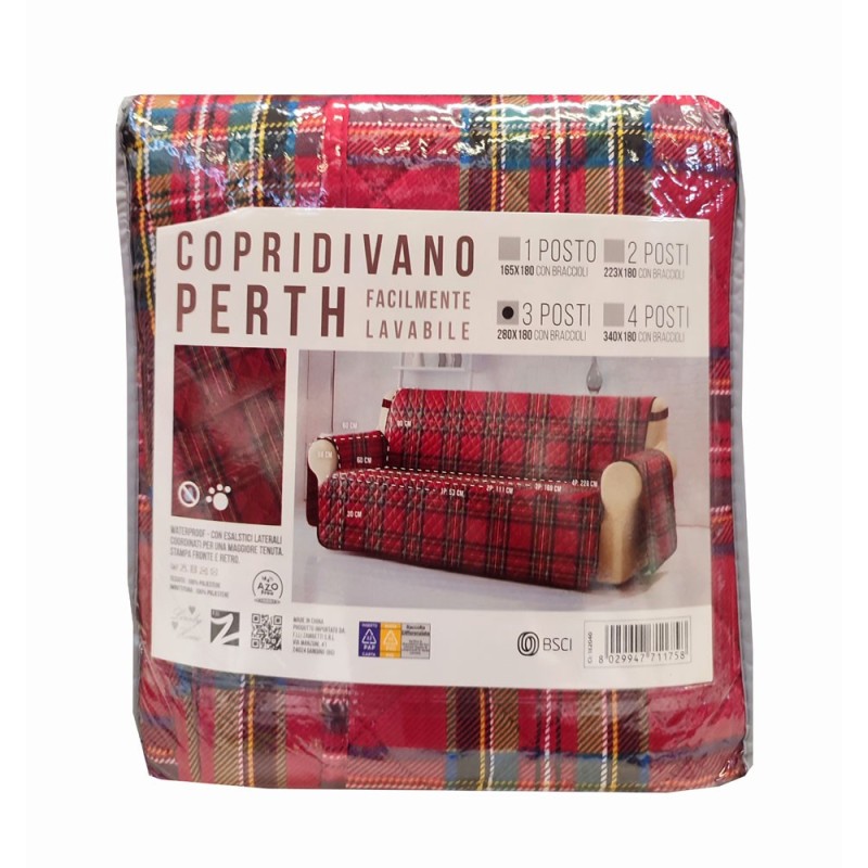 Copertura arredo salvadivano Phert da Lovely home. Per 2 e 3 posti, trapuntato, stampa fronte retro, waterproof, con elastici laterali coordinati per una maggiore tenuta, esterno e imbottitura 100% poliestere.