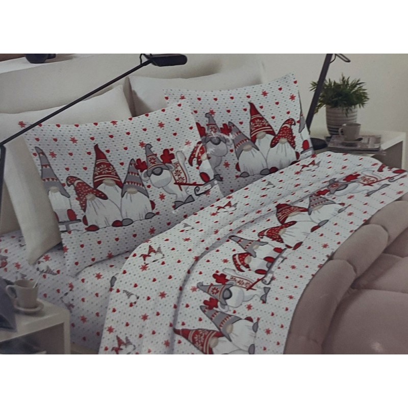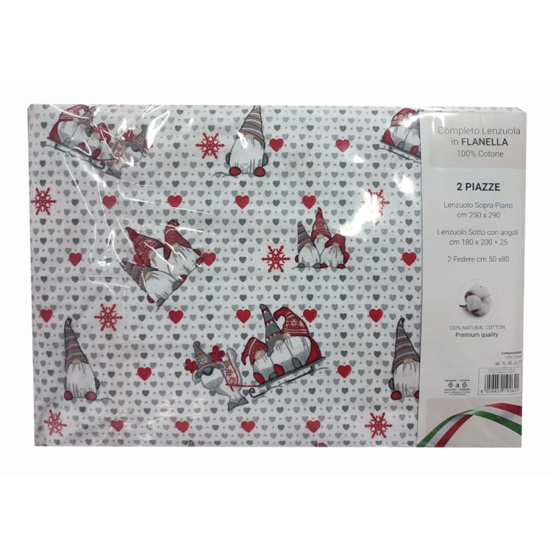 Completo lenzuola 100% flanella cotone disegno Gnomi da Marinoni. Disponibile nella misura letto matrimoniale / due piazze, singolo / una piazza e una piazza e mezza, trattamento anti-pilling, bel prodotto made in Italy con un ottimo rapporto qualità prezzo.