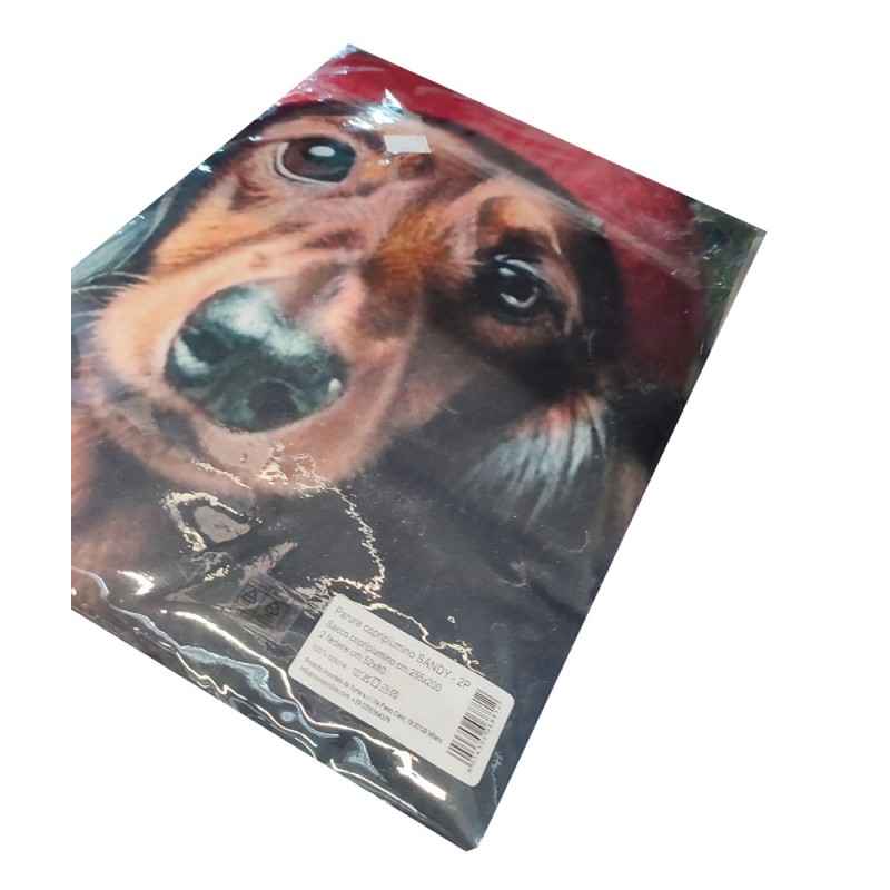 Copripiumino Sandy Basset da Novia, ottima azienda di biancheria. Disponibile nelle misure letto matrimoniale / due piazze, 100% cotone con stampa digitale.