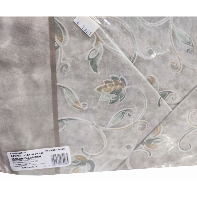 COMPLETO LENZUOLA FLANELLA MATRIMONIALE RAMAGE AMBROSIANA