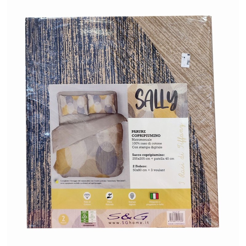 Parure copripiumino Sally da SGhome linea I rasi di Tiffany, ottima azienda italiana di biancheria per la casa. Tessuto in rasi di cotone e stampa digitale. Disponibile nella misura letto matrimoniale / due piazze. Un prodotto di alta qualità.