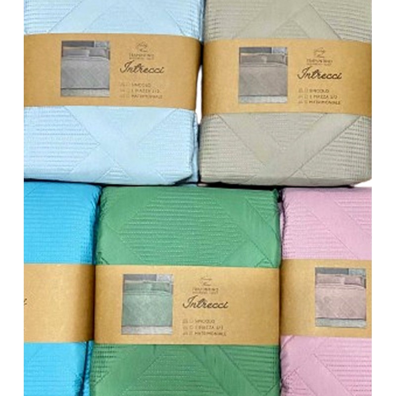 Trapuntino primavera / estate Intrecci da Lovely home. In microfibra termosaldato con bella lavorazione, disponibile nella misure 3 misure letto. Ottimo prezzo di vendita.