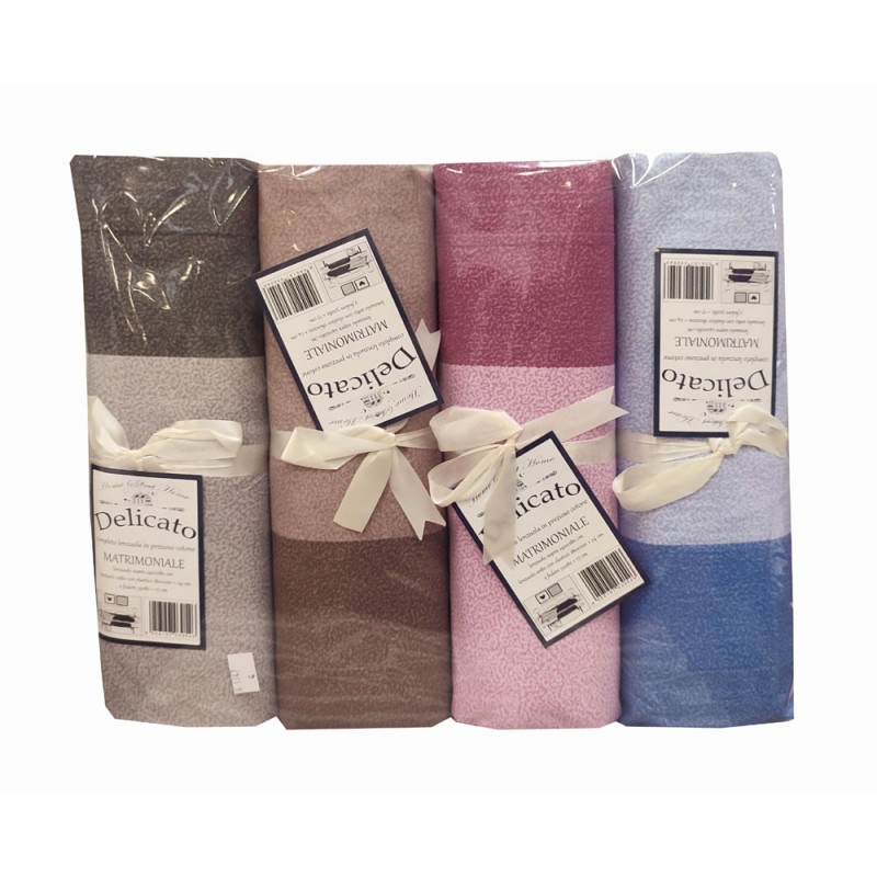 Completo lenzuola 100% cotone disegno Striato da Home sweet home. Ottimo rapporto qualità prezzo, confezione da 4 completi assortiti nei colori. Disponibile solo nella misura letto matrimoniale / due piazze.