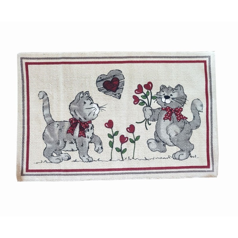 Tappeto casa cucina modello Gatti da Pezzoli. Diverse misure disponibili, 100% cotone canvas, sottofondo antiscivolo, bella fantasia, ottimo prodotto di vendita.