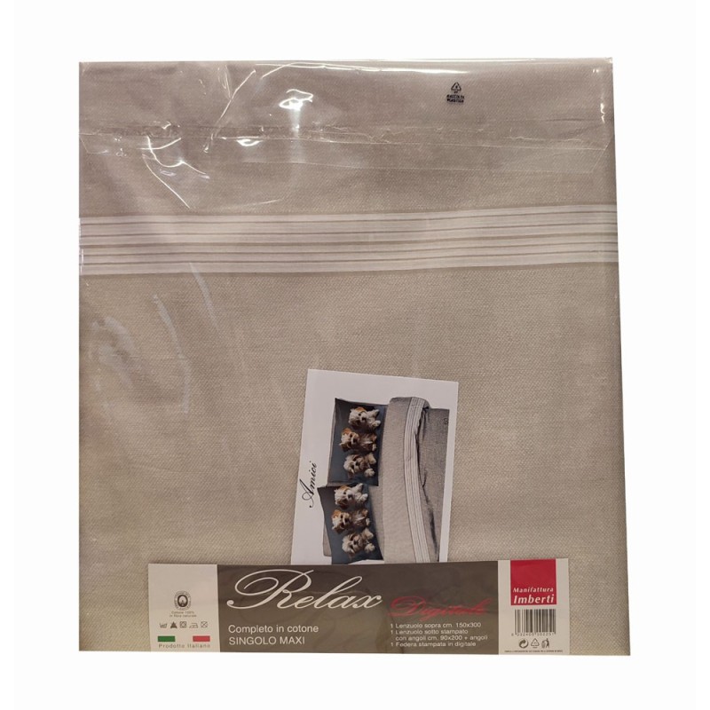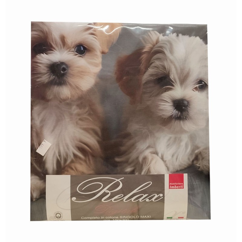 COMPLETO LENZUOLA COTONE DIGITALE RELAX CANI AMICI 63 IMBERTI