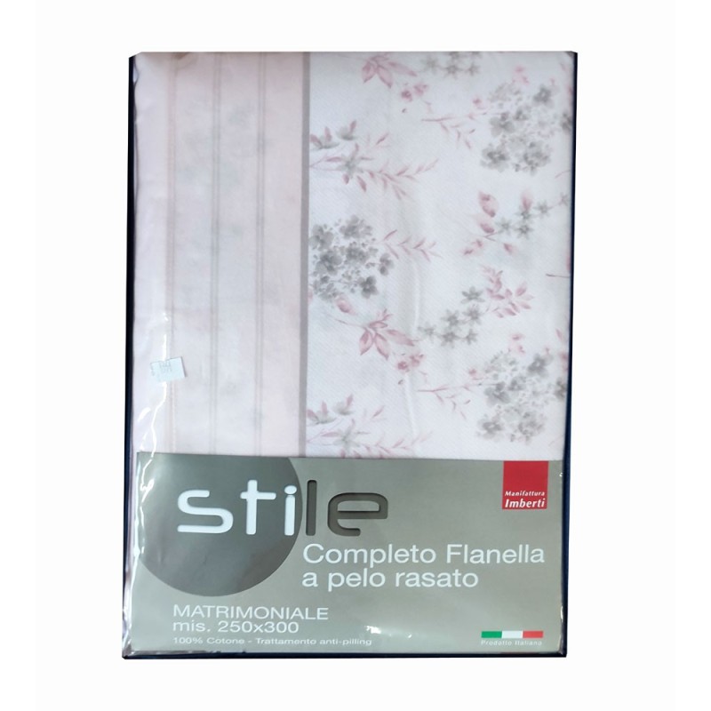 Completo lenzuola 100% flanella cotone disegno Favola Linea Stile da Manifattura Imberti, ottima azienda di biancheria per la casa Made in Italy. Disponibile nella misura letto singolo / una piazza, una piazza e mezza e matrimoniale / due piazze, 4 colori, trattamento anti-pilling, bellissimo prodotto di ottima qualità.