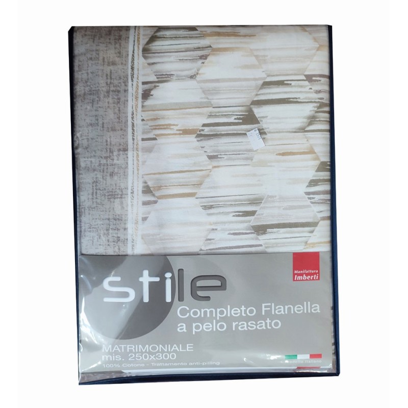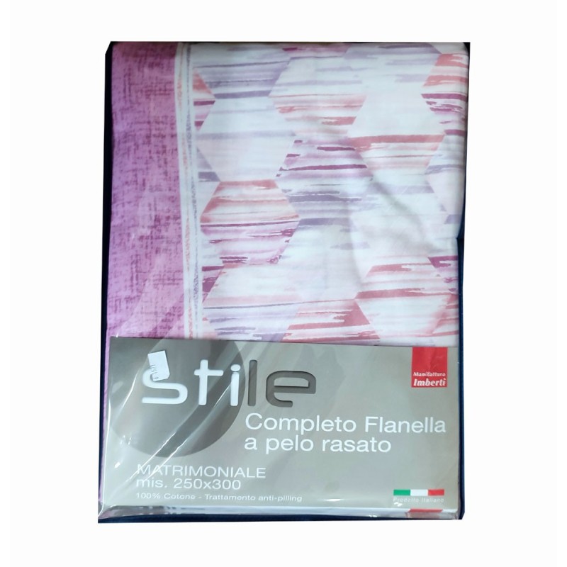 Completo lenzuola 100% flanella cotone disegno Sfizio Linea Stile da Manifattura Imberti, ottima azienda di biancheria per la casa Made in Italy. Disponibile nella misura letto singolo / una piazza, una piazza e mezza e matrimoniale / due piazze, 5 colori, trattamento anti-pilling, bellissimo prodotto di ottima qualità.