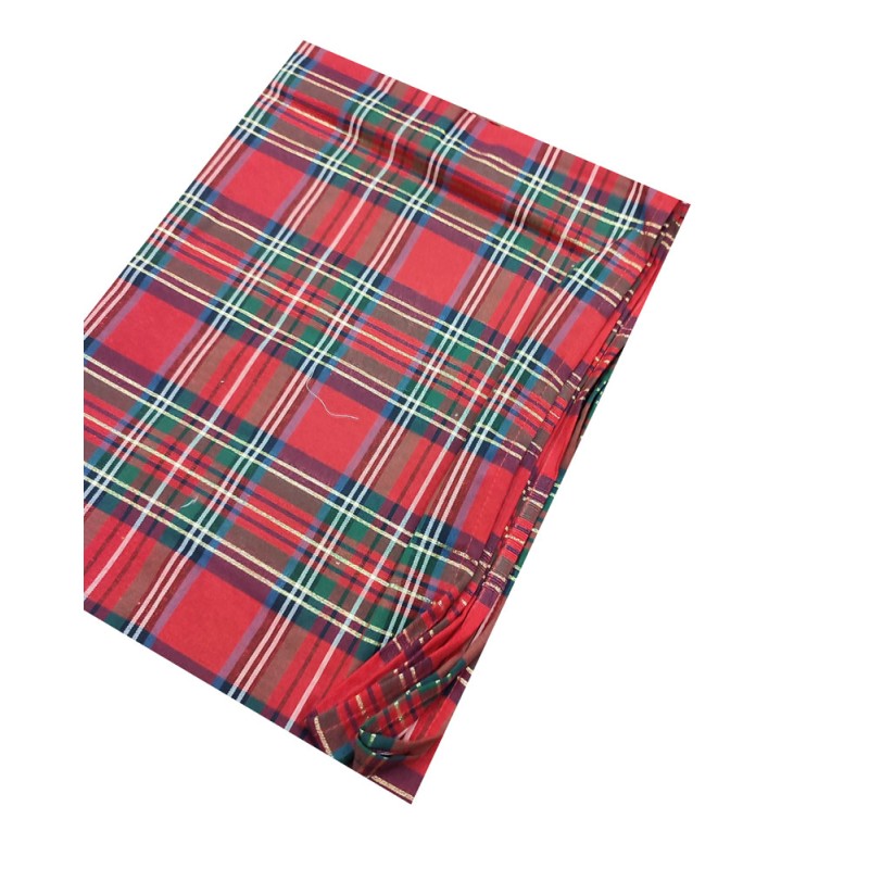 Tovaglia misto cotone Miros speciale Natale Tartan lurex da Pezzoli, ottima azienda di biancheria per la casa made in Italy. Tessuto spesso, molto resistente ai lavaggi e con stampe solide visto la composizione mista poliestere. Rifinita con orlino e fondo greggio, un bellissimo prodotto che può essere utilizzato anche come copritavolo. Lavabile in lavatrice a 40°.