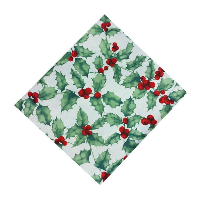 Tovaglia 100% cotone speciale Natale Agrifoglio da Pezzoli, ottima azienda di biancheria per la casa made in Italy. Rifinita con orlino, un bellissimo prodotto con un ottimo rapporto qualità prezzo. Lavabile in lavatrice a 40°.