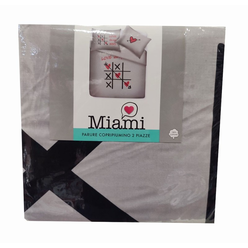 Copripiumino 100% cotone disegno Love tris da Miami GIT gruppo importatori tessili, ottima azienda di biancheria. Disponibile solo nella misura letto matrimoniale / due piazze.