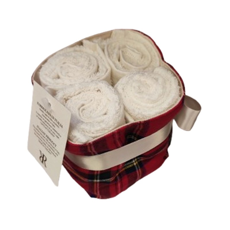 Confezione 4 pezzi, 30x30cm, 100% cotone, bella presentazione contenitore in tessuto tartan, Made in Italy