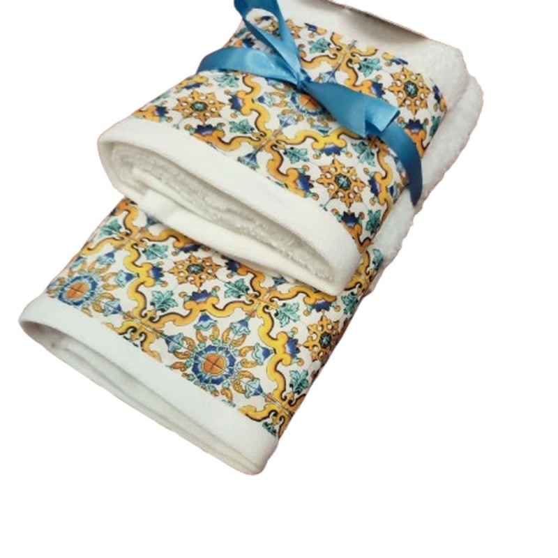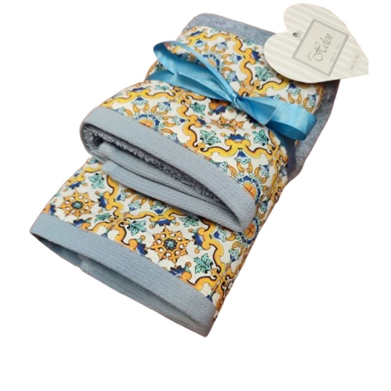Coppia spugna asciugamano + ospite Capri da Helen, ottima azienda di biancheria per la casa made in Italy. Spugna morbidissima 100% cotone, stampe digitale nella balza, bellissimo prodotto di qualità e eleganza.