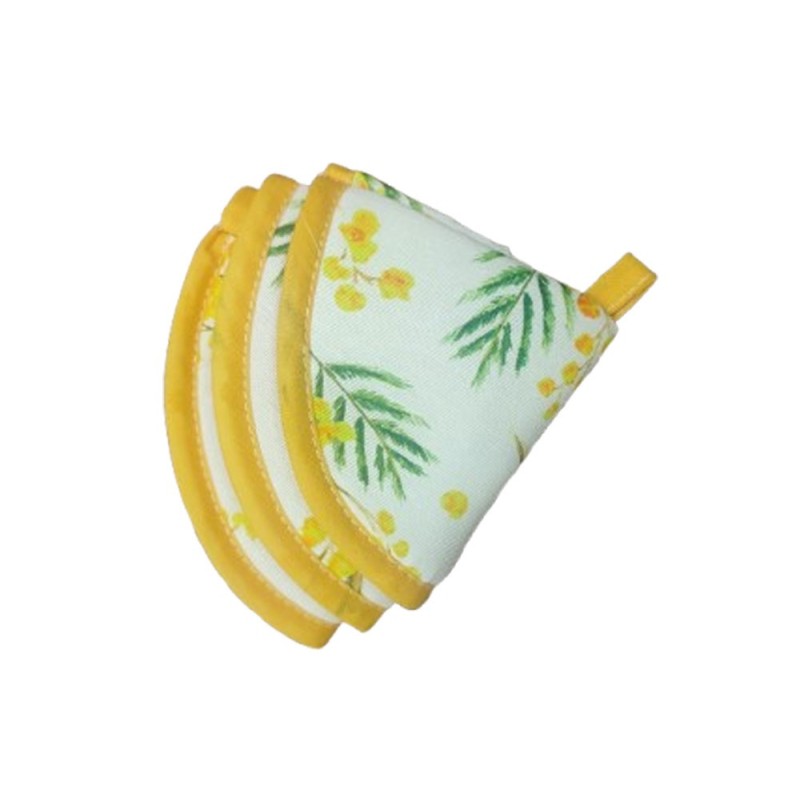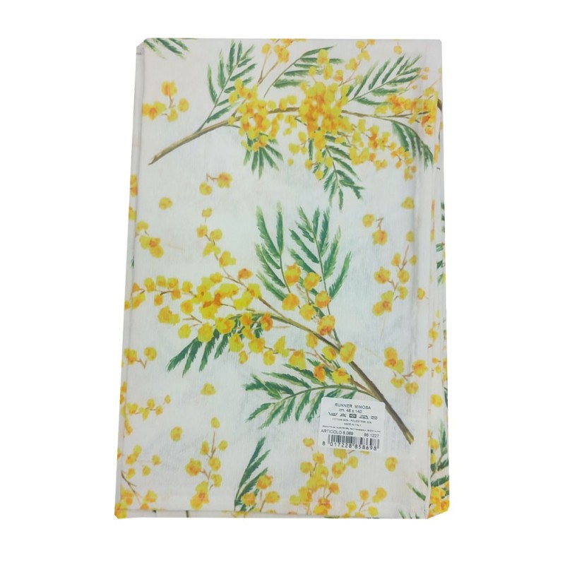 Set cucina disegno Mimosa da Magie di casa Almatex, ottima azienda di biancheria per la casa Made in Italy. 80% cotone stampato. Comprende varie tipologie di prodotti per potere proporre una linea molto bella per la cucina con ottimi prezzi di vendita.