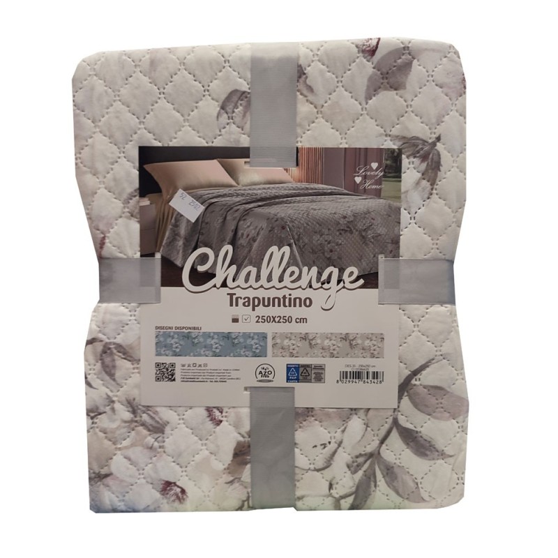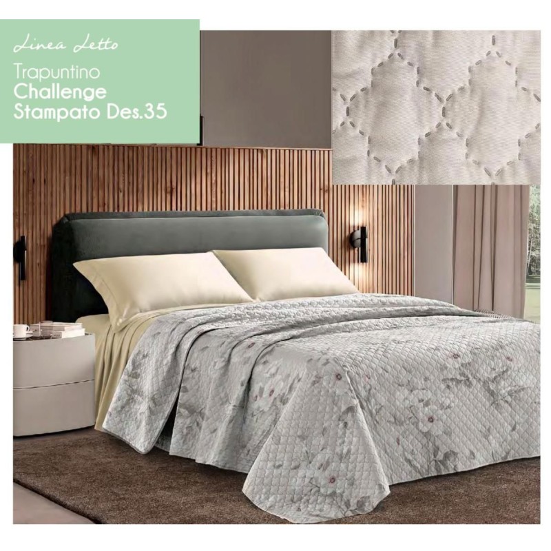 Trapuntino primavera / estate stampato Challenge 35 da Lovely home. In microfibra, termosaldato, disponibile nelle misure letto matrimoniale / due piazze, singolo / una piazza e una piazza e mezza. Ottimo rapporto qualità prezzo.