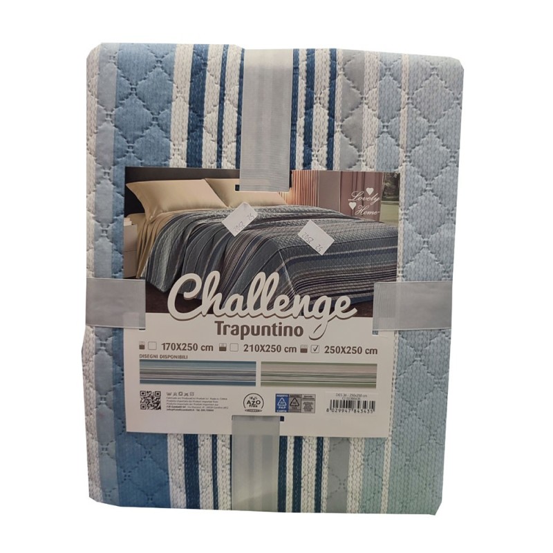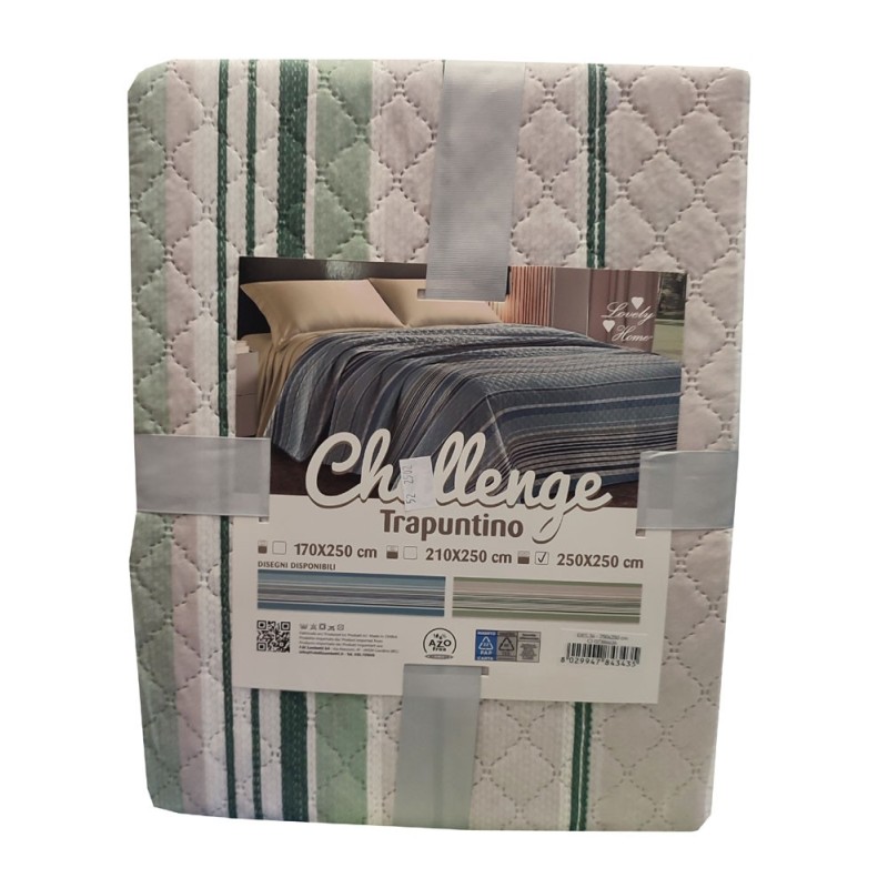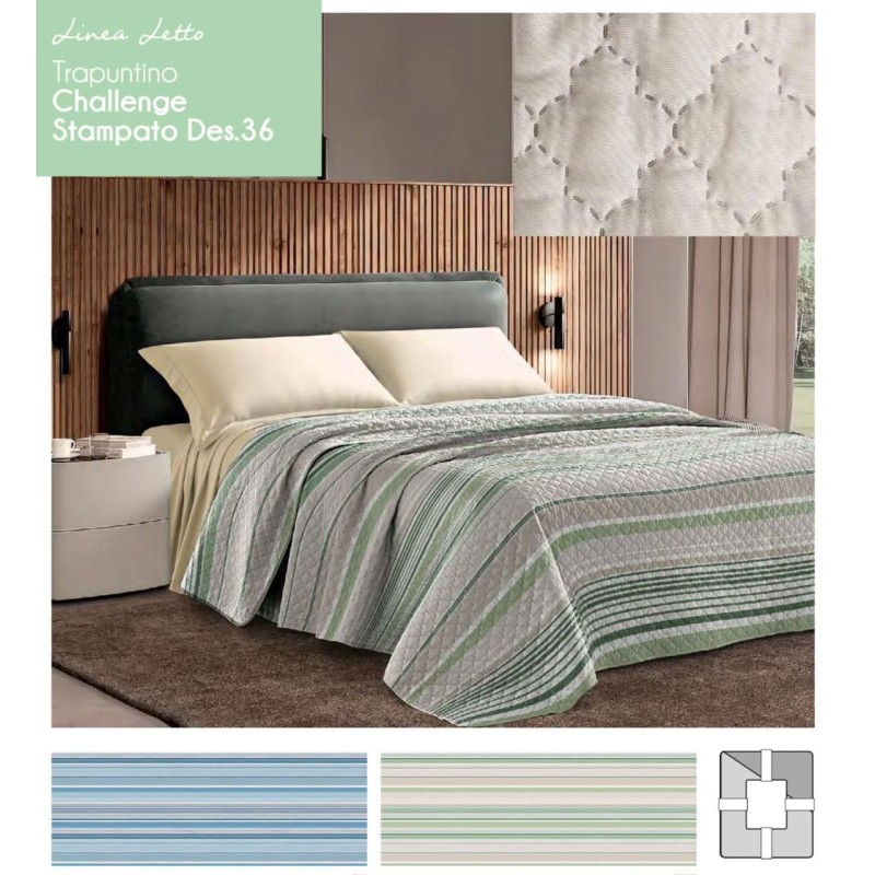 Trapuntino primavera / estate stampato Challenge 36 da Lovely home. In microfibra, termosaldato, disponibile nelle misure letto matrimoniale / due piazze, singolo / una piazza e una piazza e mezza. Ottimo rapporto qualità prezzo.