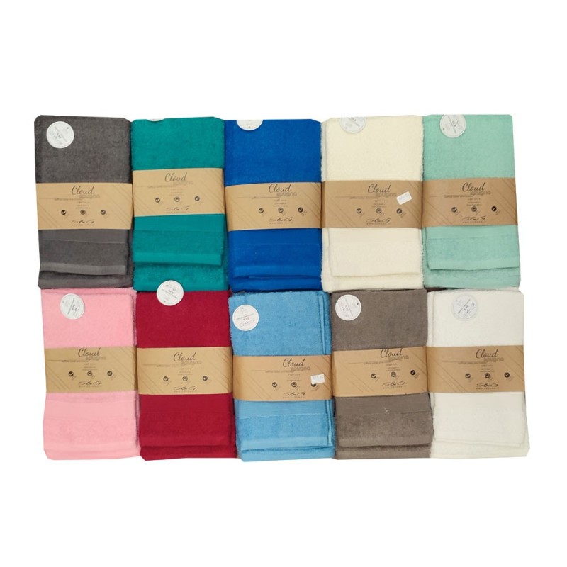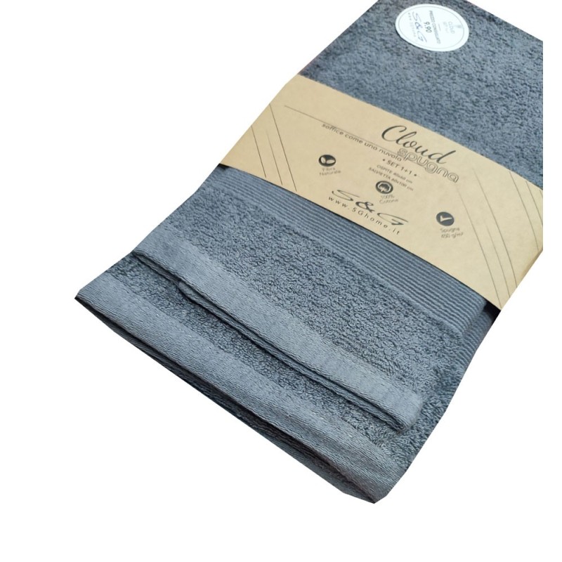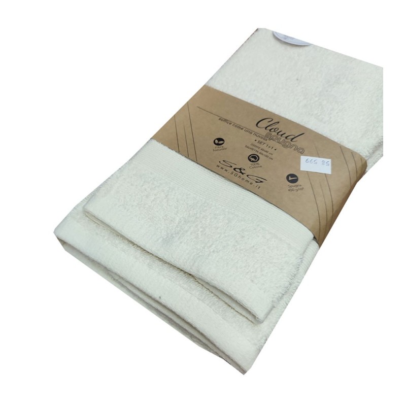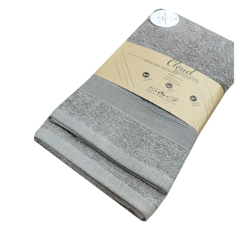 Coppia spugna asciugamano + ospite Cloud da SGhome, ottima azienda di biancheria per la casa. Spugna morbidissima 100% cotone, 450gr/m2, bordo jacquard, morbida, assorbente e di ottima qualità.