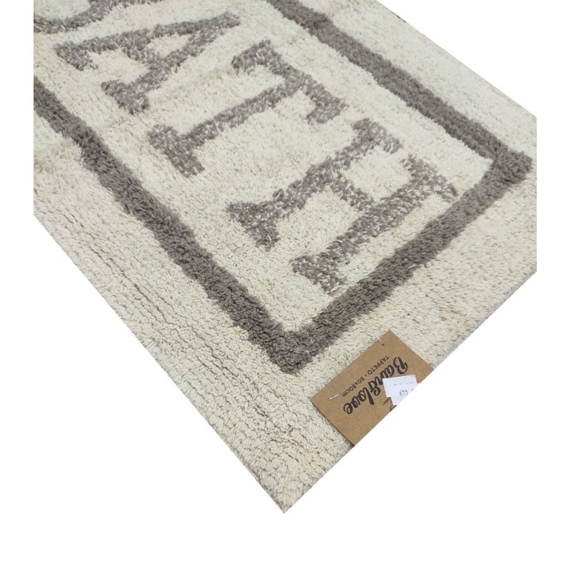 Tappeto bagno modello Bath da Lovely home, ottima azienda nella produzione di biancheria per la casa. Bella lavorazione in rilievo, 50x80cm, 70% cotone, morbido e assorbente, sottofondo antiscivolo, lavabile in lavatrice, 2 colori, ottimo prezzo di vendita.