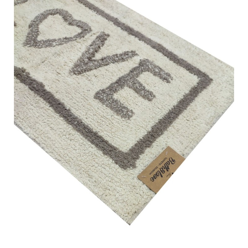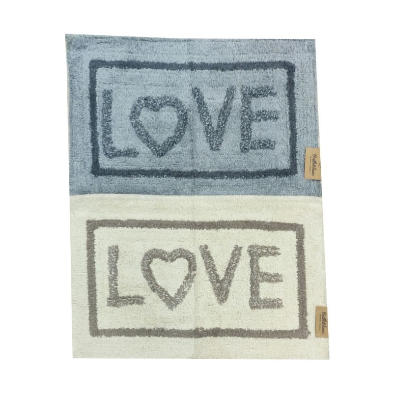 Tappeto bagno modello Love da Lovely home, ottima azienda nella produzione di biancheria per la casa. Bella lavorazione in rilievo, 50x80cm, 70% cotone, morbido e assorbente, sottofondo antiscivolo, lavabile in lavatrice, 2 colori, ottimo prezzo di vendita.