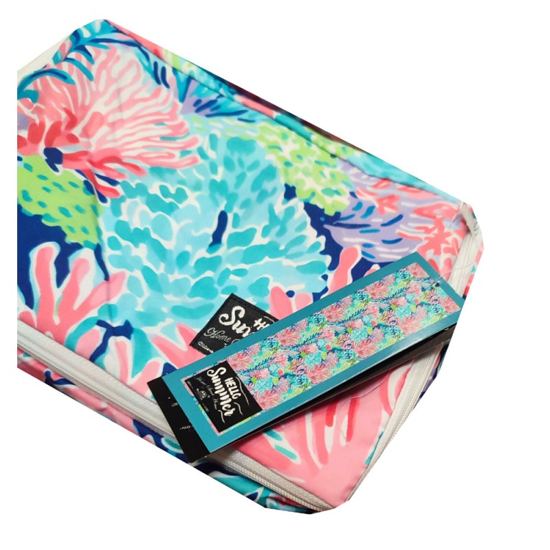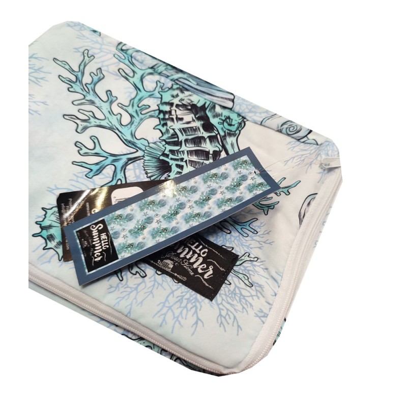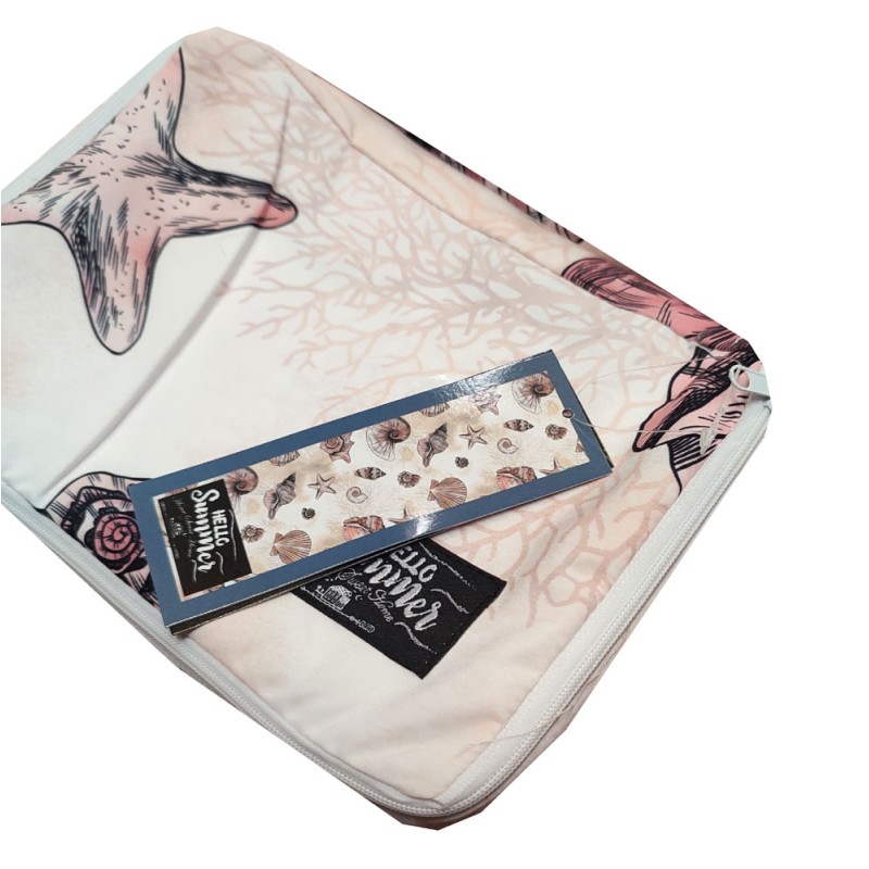 Telo mare da lettino Hello summer da Home sweet home, ottima azienda di biancheria per la casa. Misura 70 x 185 cm, microfibra, con tasche, cuscino gonfiabile, sacca e elastici per fissaggio. Bellissimo articolo di vendita.