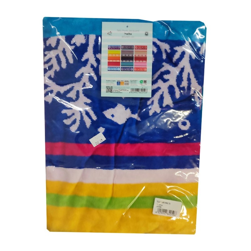 Telo mare disegno Malta da Lovely Home, ottima azienda di biancheria per la casa. Misura 90 x 165 cm, 100% Cotone spugna jacquard. Bel prodotto di importazione Egitto con un ottimo rapporto qualità prezzo.