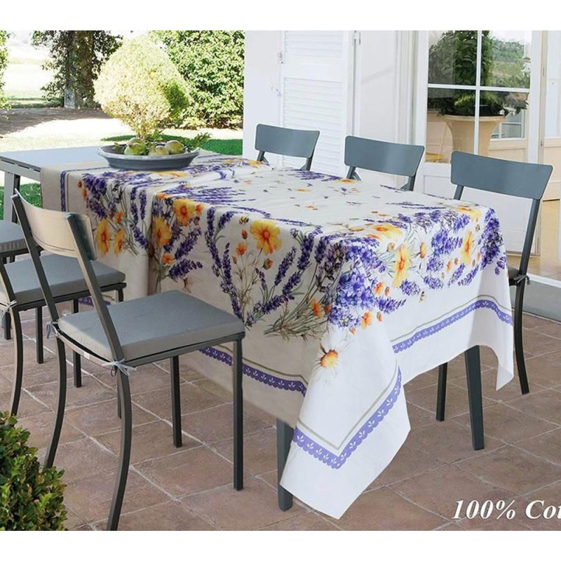 - Tovaglia cotone digitale Lavanda fiori