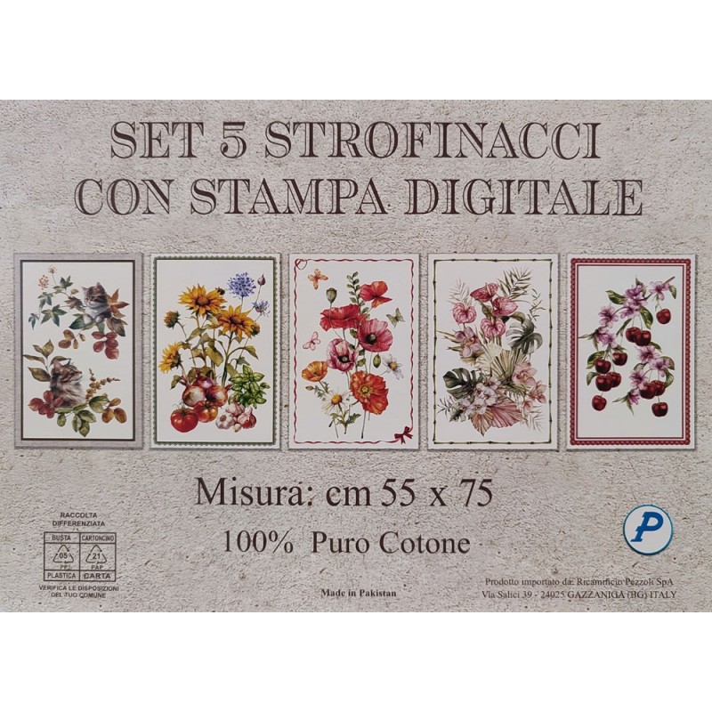 STROFINACCI 5 PEZZI 50X70CM COTONE DIGITALE ESTATE PEZZOLI