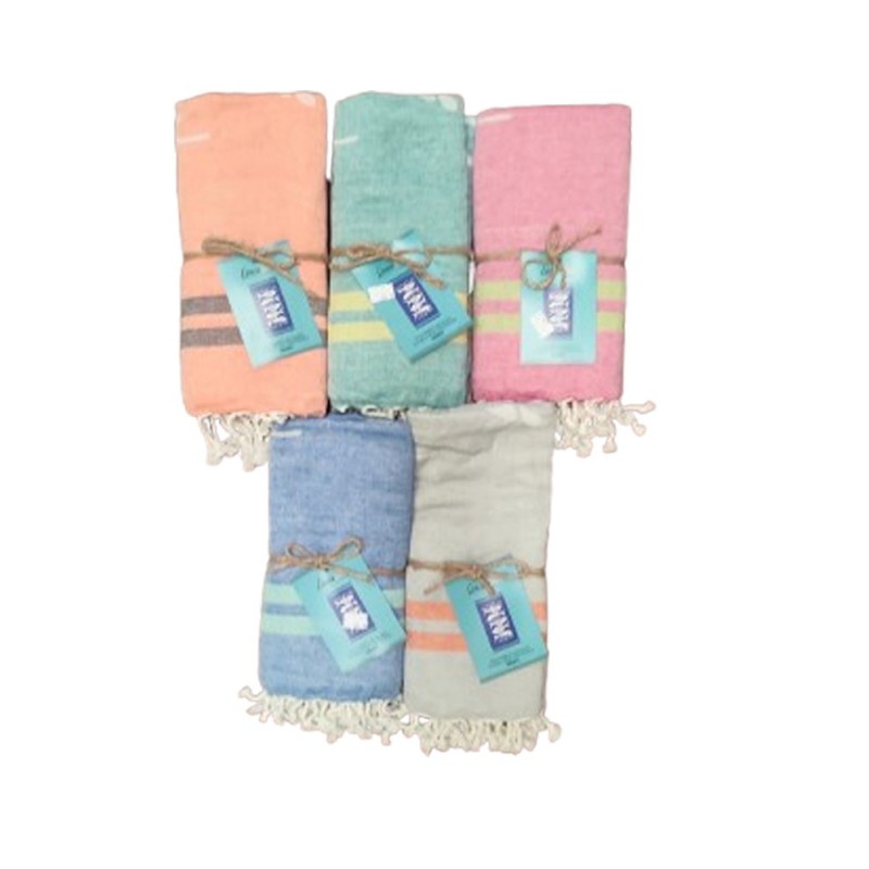5 colori, 80% cotone 20% poliestere, 90x170cm, jacquard double face con frange, ottimo rapporto qualità prezzo da Linea oro