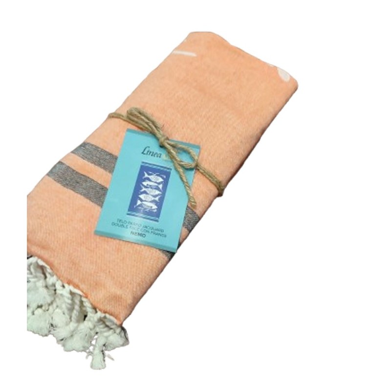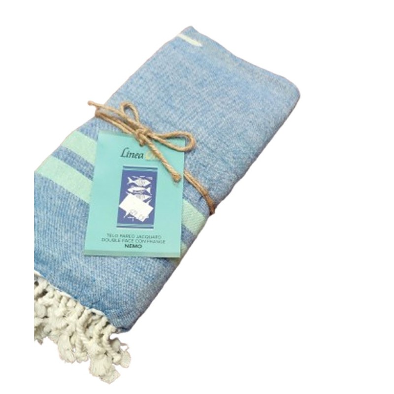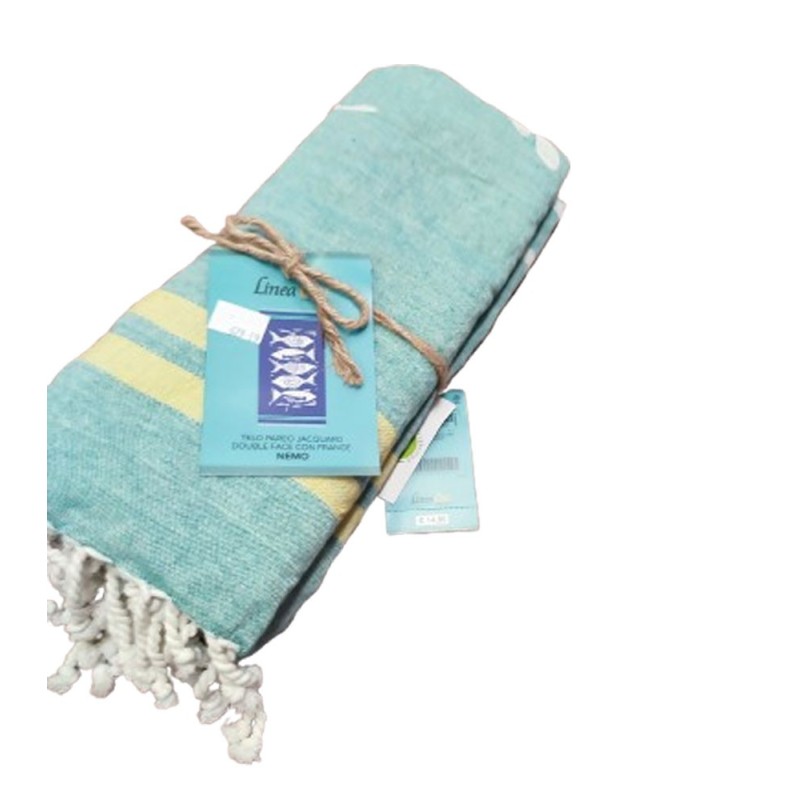 TELO MARE PAREO 90X170CM JACQUARD DOUBLE FACE FRANGE NEMO LINEA ORO