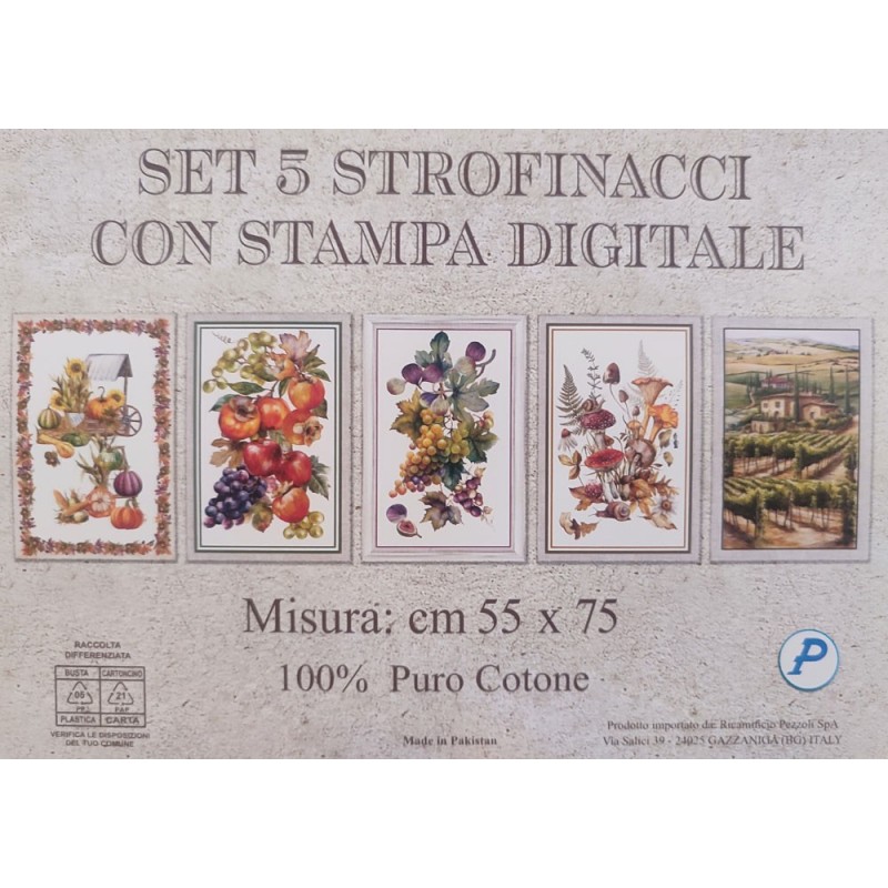 STROFINACCI 5 PEZZI 50X70CM COTONE DIGITALE AUTUNNO PEZZOLI