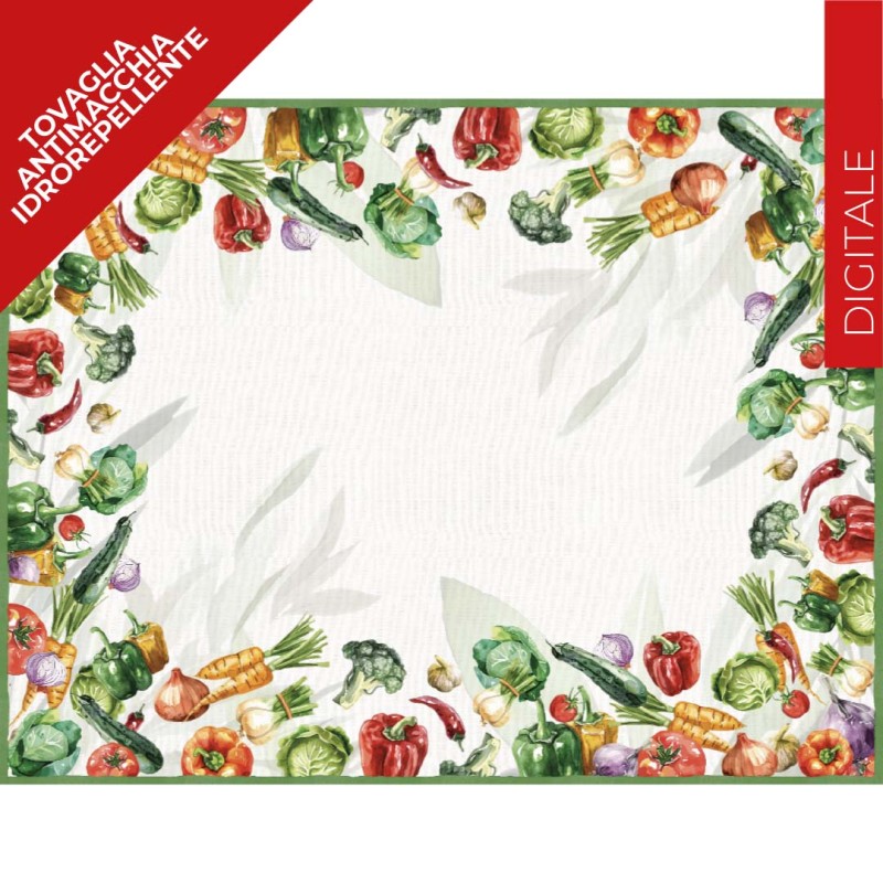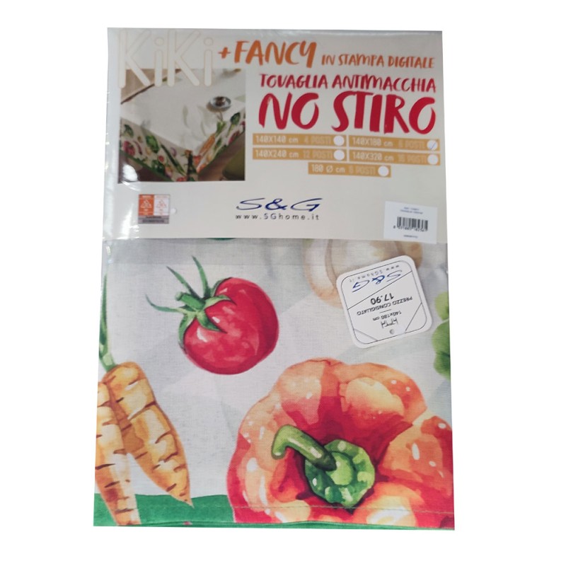 Tovaglia antimacchia disegno Kiki Fancy Orto da Sghome, ottima azienda di biancheria per la casa. Tessuto 100% poliestere effetto lino, si pulisce facilmente con una spugnetta, stampe digitali molto belle, misure disponibili da 6 e 12, un prodotto vincente a un ottimo prezzo di vendita.