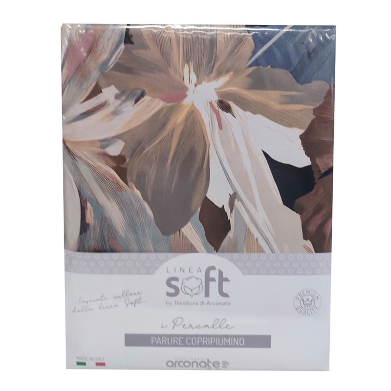 Parure copripiumino matrimoniale 100% percalle puro cotone, stampa digitale a alta risoluzione, con sacco e due federe, altissima qualità italiana da Tessitura di Arconate