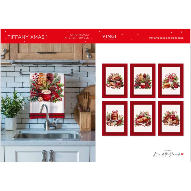 Strofinacci set 6 pezzi Natale Tiffany Xmas 1 da Vingi, ottima azienda di biancheria per la casa. Assortiti 1x disegno, 100% cotone, stampa digitale, belllissimo prodotto con un ottimo rapporto qualità prezzo.