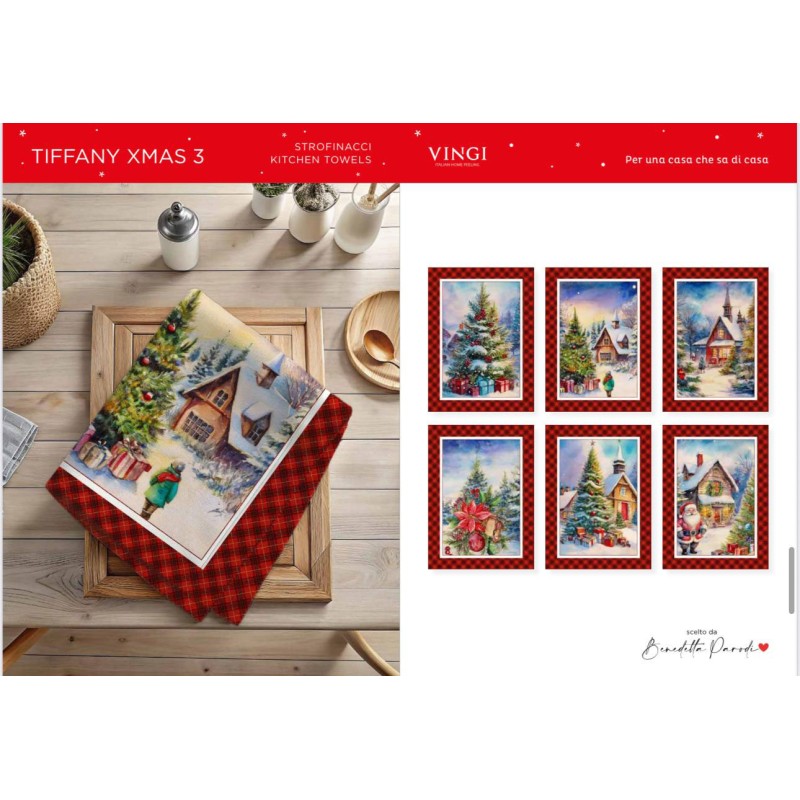 Strofinacci set 6 pezzi Natale Tiffany Xmas 3 da Vingi, ottima azienda di biancheria per la casa. Assortiti 1x disegno, 100% cotone, stampa digitale, belllissimo prodotto con un ottimo rapporto qualità prezzo.