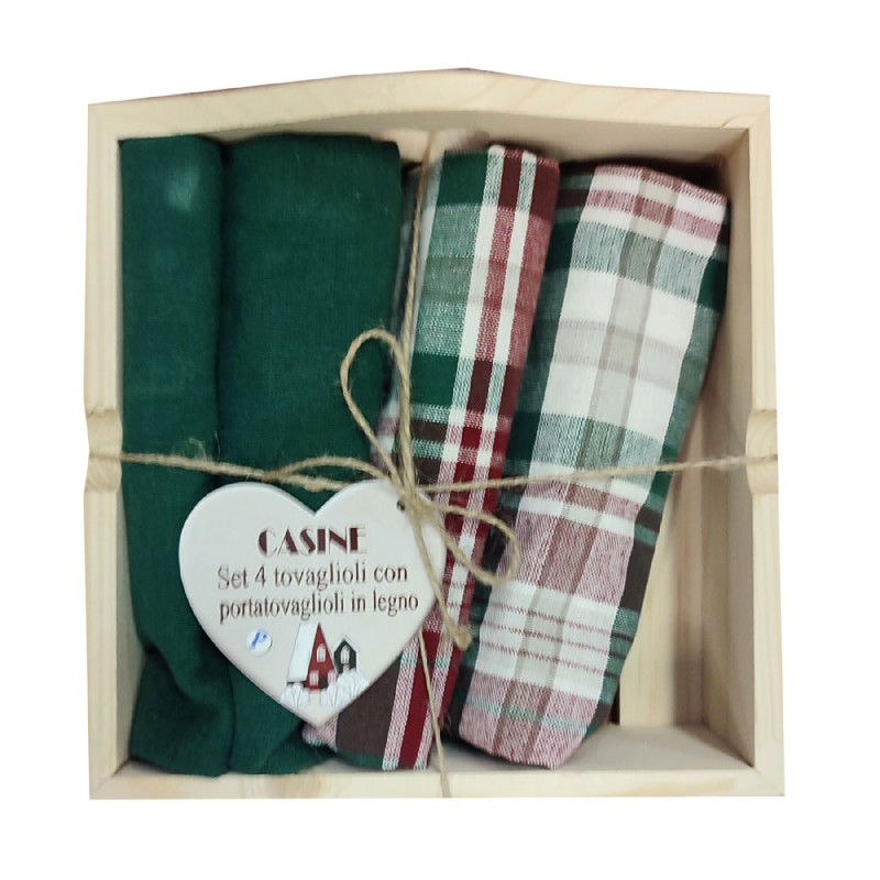 - Tovaglioli 4 pezzi + porta tovaglioli in legno