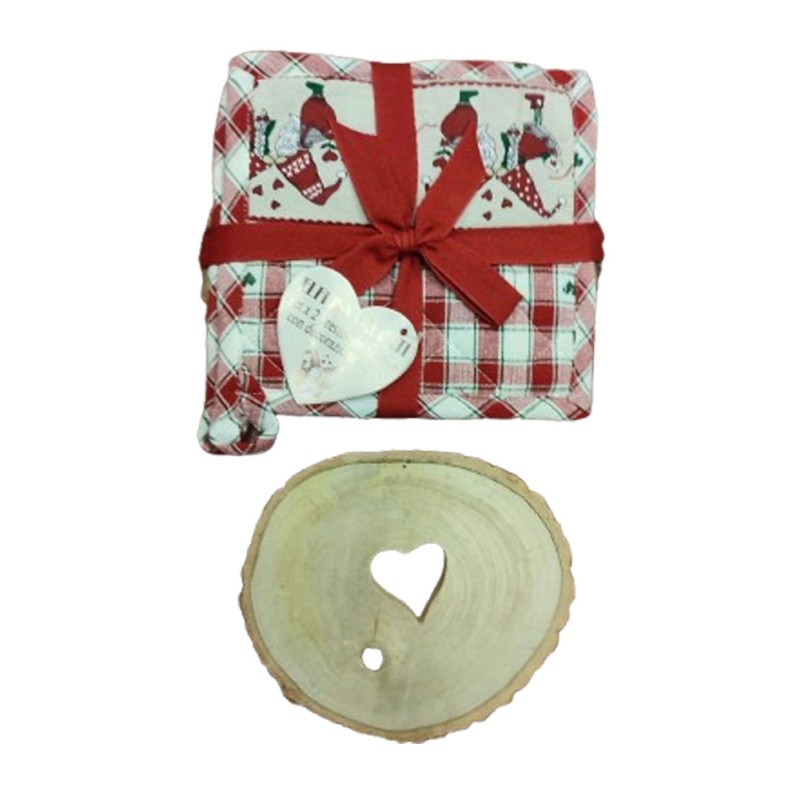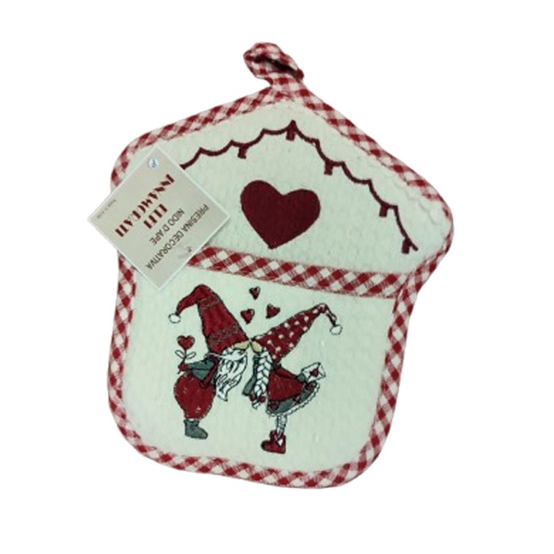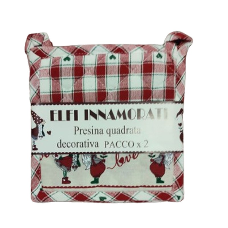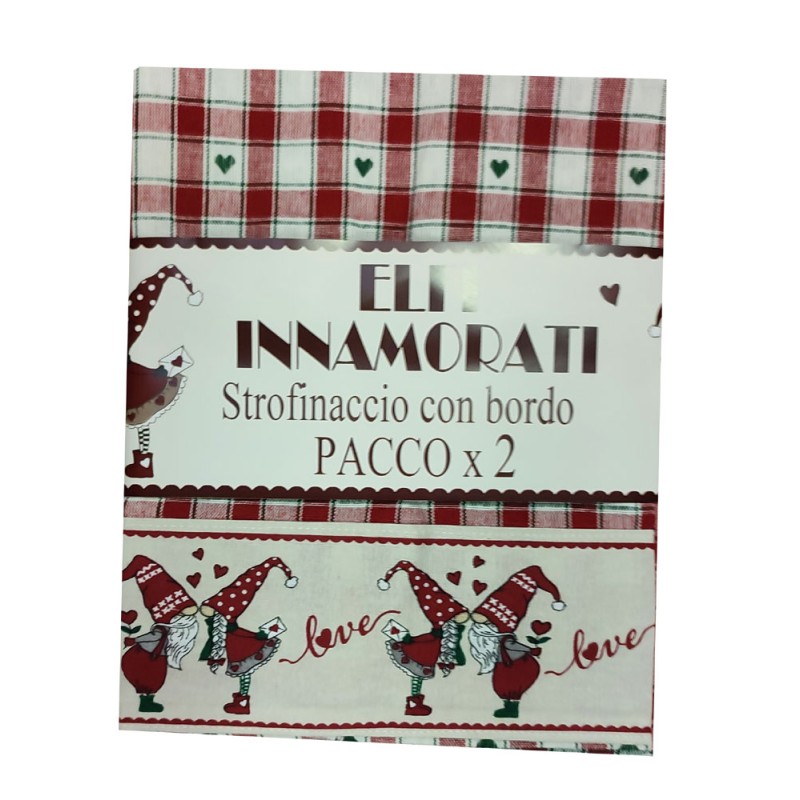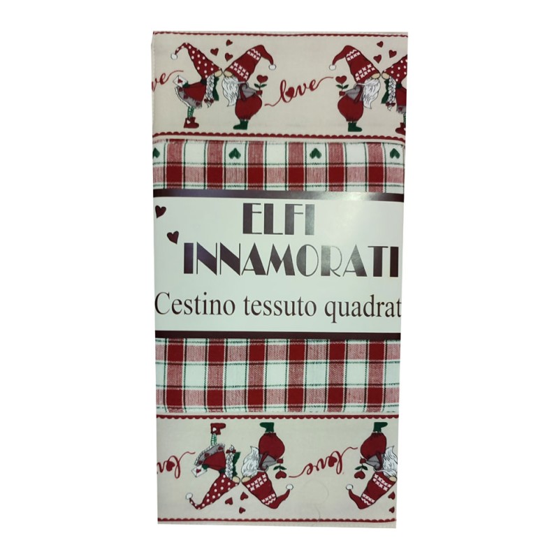 Vari prodotti stessa linea Elfi innamorati, presine, strofinacci, americana, cestino, grembiule e altro, 100% cotone tinto in filo con bordo stampato, linea molto molto carina con ottimi prezzi