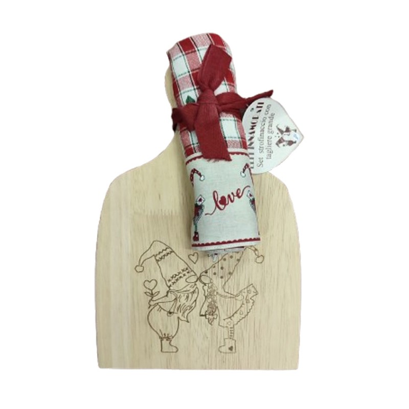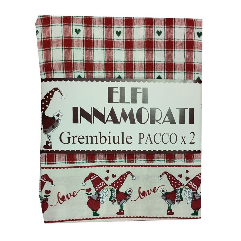 Set cucina disegno Elfi innamorati da Pezzoli, ottima azienda di biancheria per la casa. 100% cotone tinto in filo con bordo stampato. Comprende varie tipologie di prodotti per potere proporre una linea completa molto bella per la cucina con ottimi prezzi di vendita.