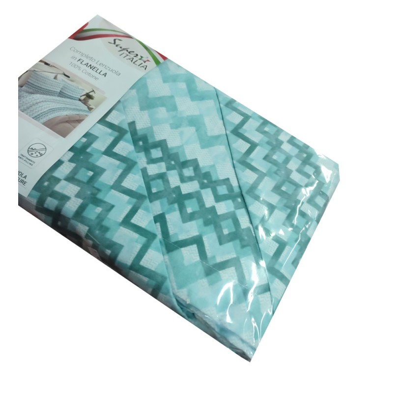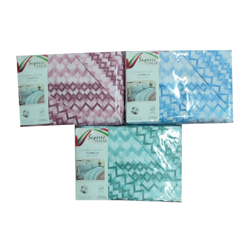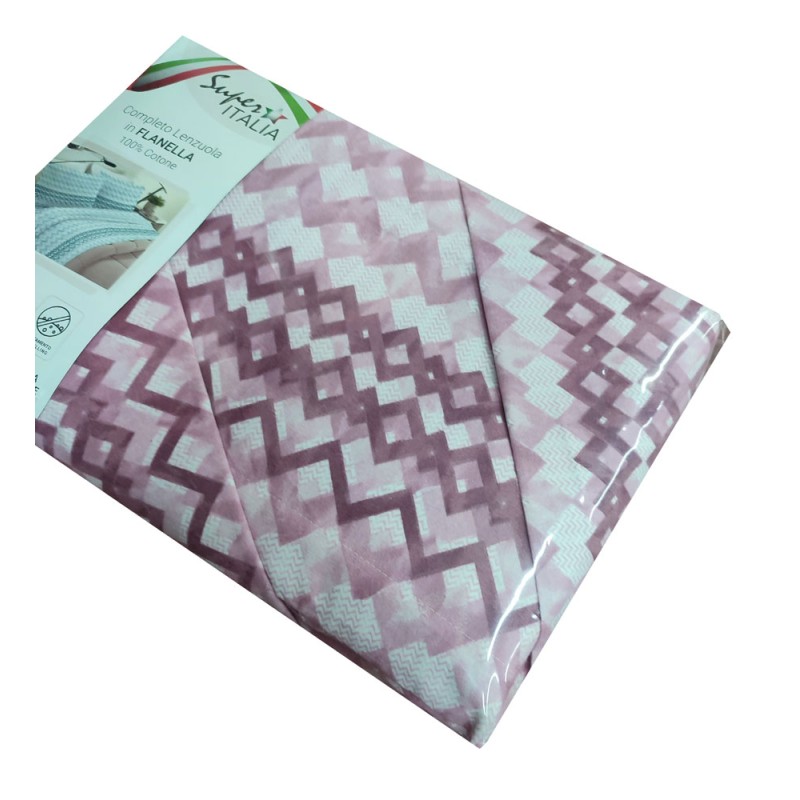 COMPLETO LENZUOLA FLANELLA MATRIMONIALE ROMBI SUPER ITALIA