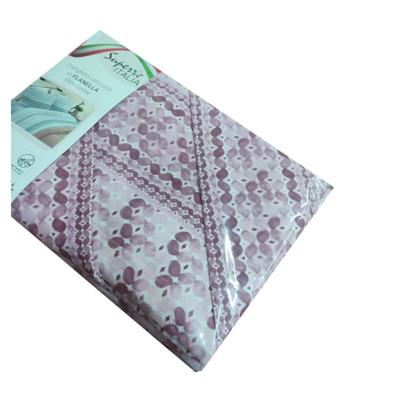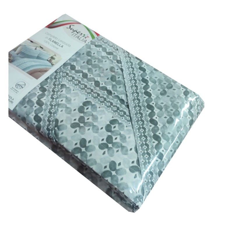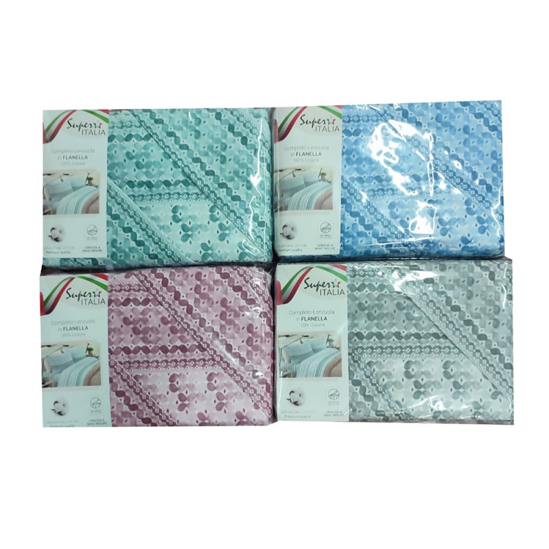 Completo lenzuola 100% flanella cotone disegno Tondi Super Italia. Disponibile nella misura letto matrimoniale / due piazze, trattamento anti-pilling, bel prodotto made in Italy con un ottimo rapporto qualità prezzo.
