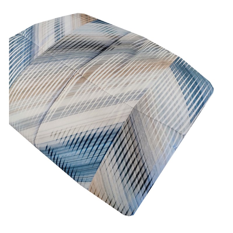 Trapunta invernale Ferraruccia 62 azzurro da GF Ferrari, azienda italiana di biancheria per la casa. Per letto matrimoniale 265x265 cm, double-face con imbottitura siliconata effetto piuma, tessuto superiore stampato microfibra mano pesca e inferiore in tinta unita, calda e morbida, ottima qualità italiana.