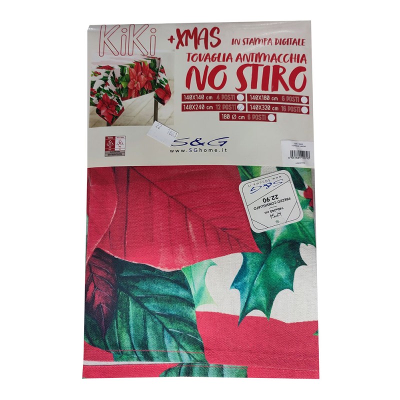 Tovaglia antimacchia disegno Kiki Xmas Stella di natale da Sghome, ottima azienda di biancheria per la casa. Tessuto 100% poliestere effetto lino, si pulisce facilmente con una spugnetta, stampe digitali molto belle, misure disponibili da 6 e 12, un prodotto vincente a un ottimo prezzo di vendita.