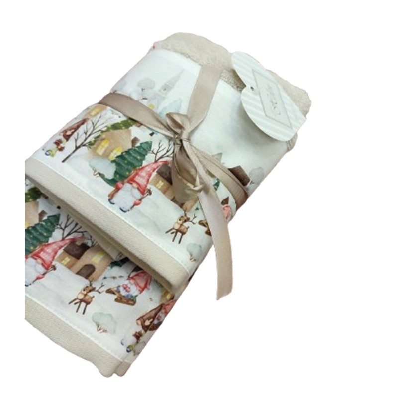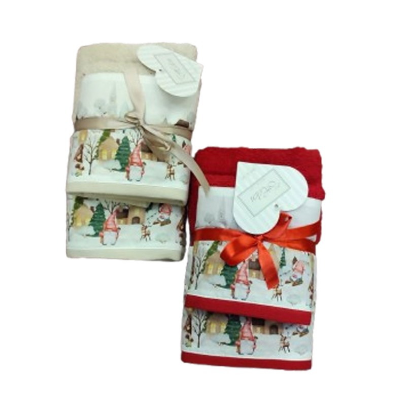 Speciale natale, 2 colori, coppia asciugamano + ospite, stampa nella balza, 100% cotone, classe e qualità italiana da Helen