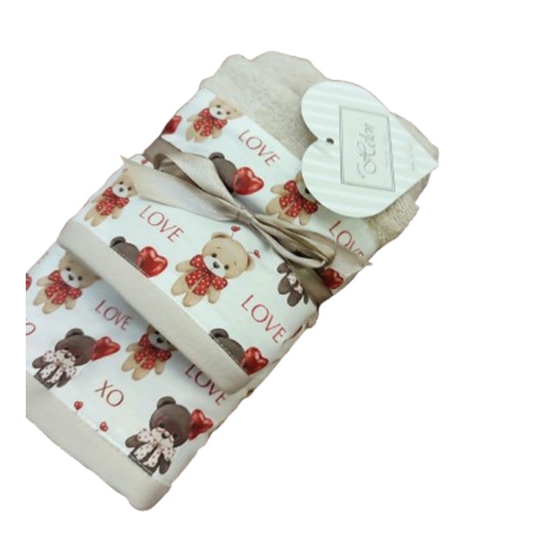 Coppia spugna asciugamano + ospite Teddy da Helen, ottima azienda di biancheria per la casa made in Italy. Spugna morbidissima 100% cotone, stampe digitale nella balza, bellissimo prodotto di qualità e eleganza.