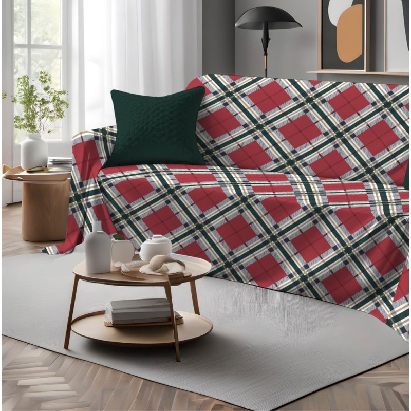 COPRITUTTO TELO ARREDO COTONE TARTAN QUADRIFOGLIO