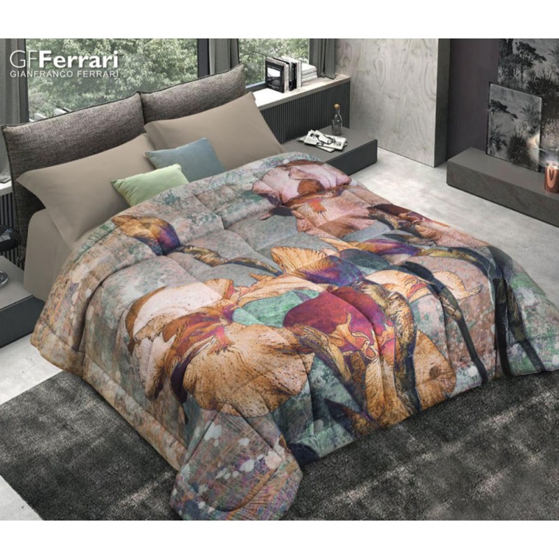 Trapunta invernale Magnifica 8 da GF Ferrari, azienda italiana di biancheria per la casa. Disegno a pannello piazato con stampa digitale a alta definizione, imbottitura trapuntata a capo per una distribuzione uniforme del calore termoregolante e esterno in morbido tessuto in microfibra che garantisce una piacevole sensazione al tatto, letto matrimoniale 265x265cm,.