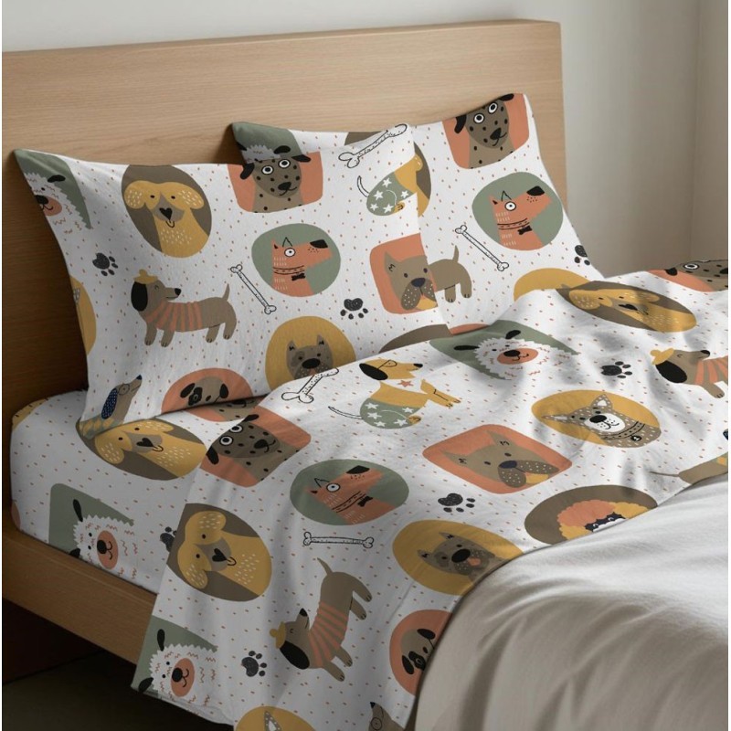 - Completo lenzuola flanella modello Cani