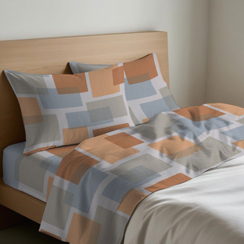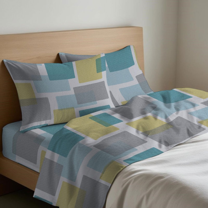 Completo lenzuola 100% flanella cotone disegno Square da Quadrifoglio-Gipetex, ottima azienda di biancheria per la casa Made in Italy. 2 colori, azzurro o lilla. Disponibile nelle misure letto singolo / una piazza, una piazza e mezza, matrimoniale / due piazze, francese, maxi con angoli e senza angoli.