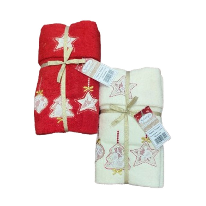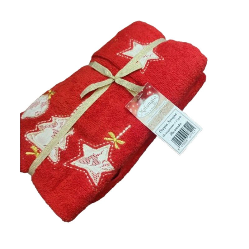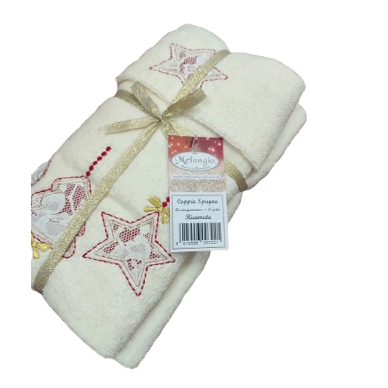 COPPIA SPUGNA ASCIUGAMANO + OSPITE RICAMATO NATALE STELLA MELANGIO