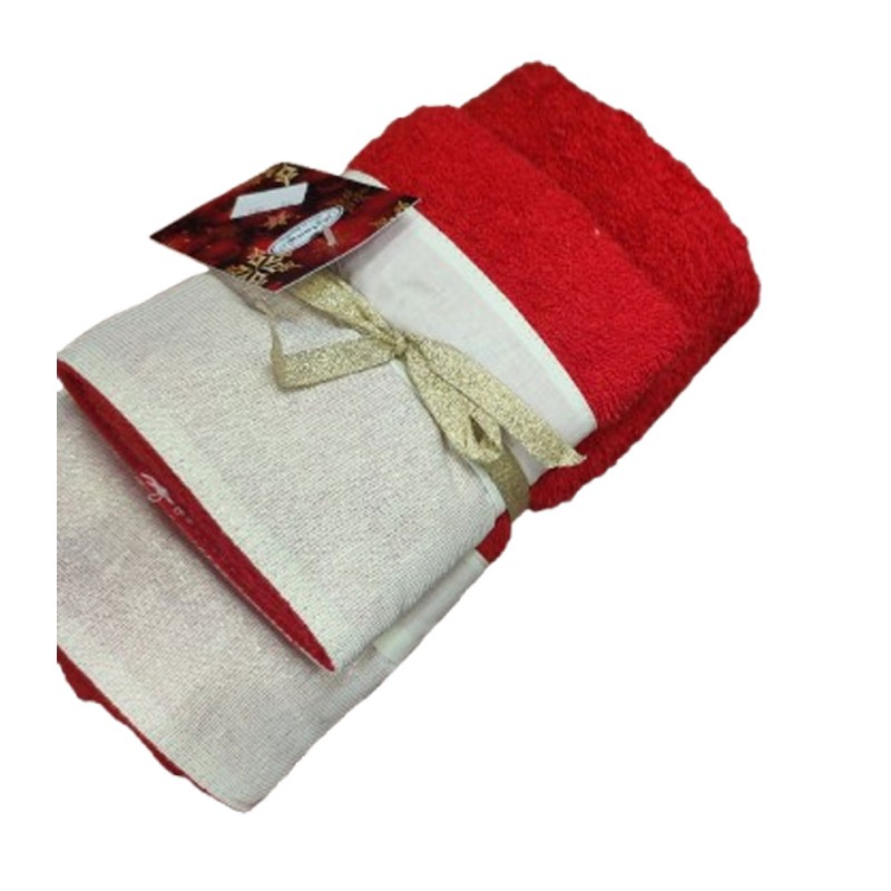 COPPIA SPUGNA ASCIUGAMANO + OSPITE LUREX NATALE FASCIA MELANGIO