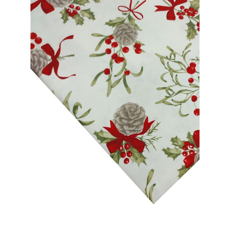 Tovaglia 100% cotone speciale Natale Pigne da Pezzoli, ottima azienda di biancheria per la casa made in Italy. Rifinita con orlino, un bellissimo prodotto con un ottimo rapporto qualità prezzo. Lavabile in lavatrice a 40°.