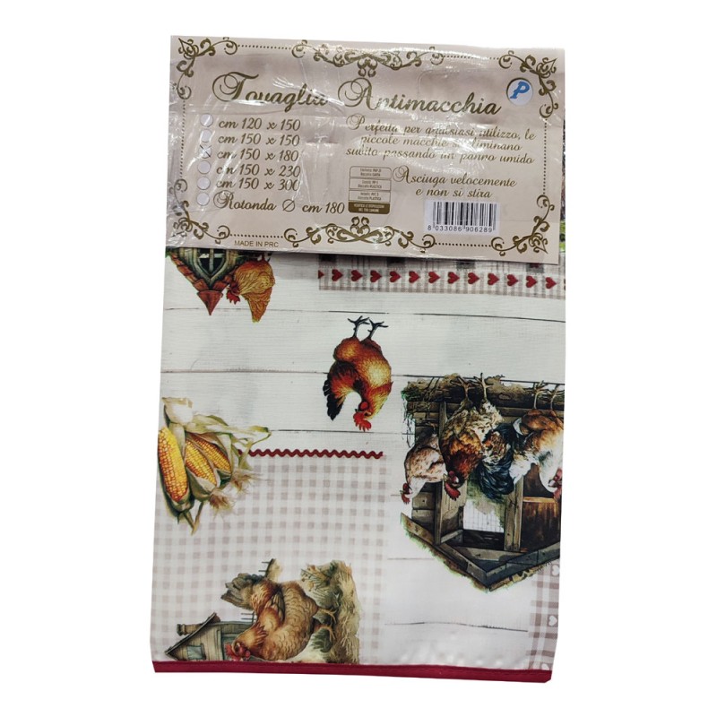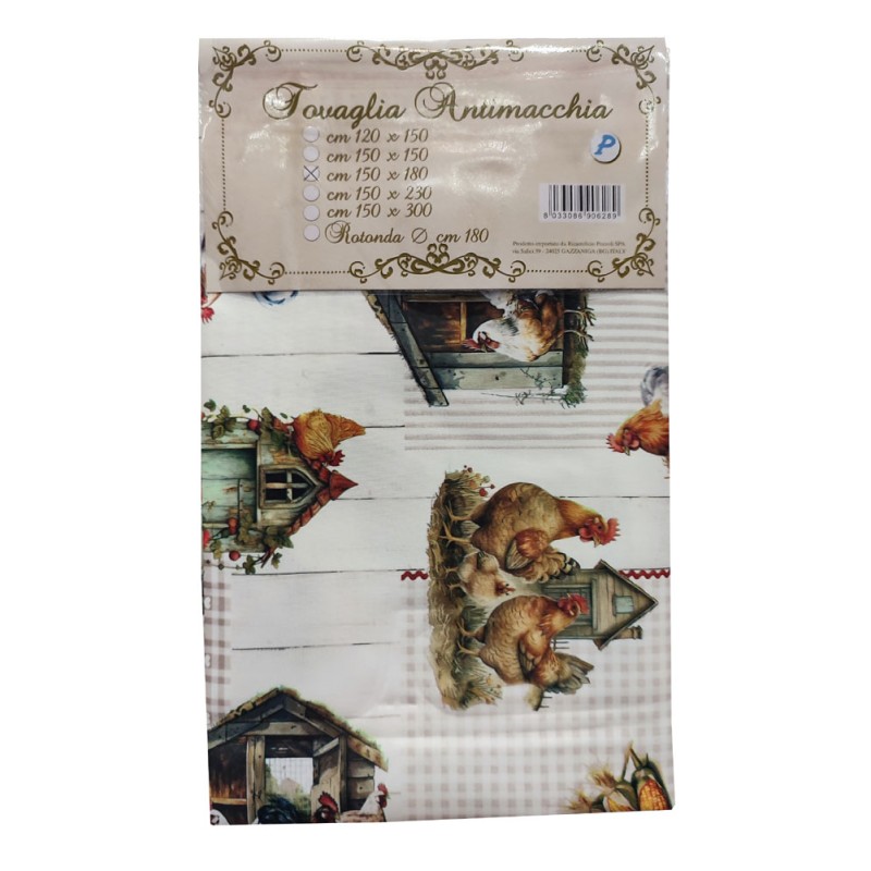 Tovaglia antimacchia disegno Galline da Pezzoli, ottima azienda di biancheria per la casa. Tessuto 100% poliestere, si pulisce facilmente con una spugnetta, stampe molto belle, varie misure disponibili, un prodotto vincente a un ottimo prezzo di vendita.